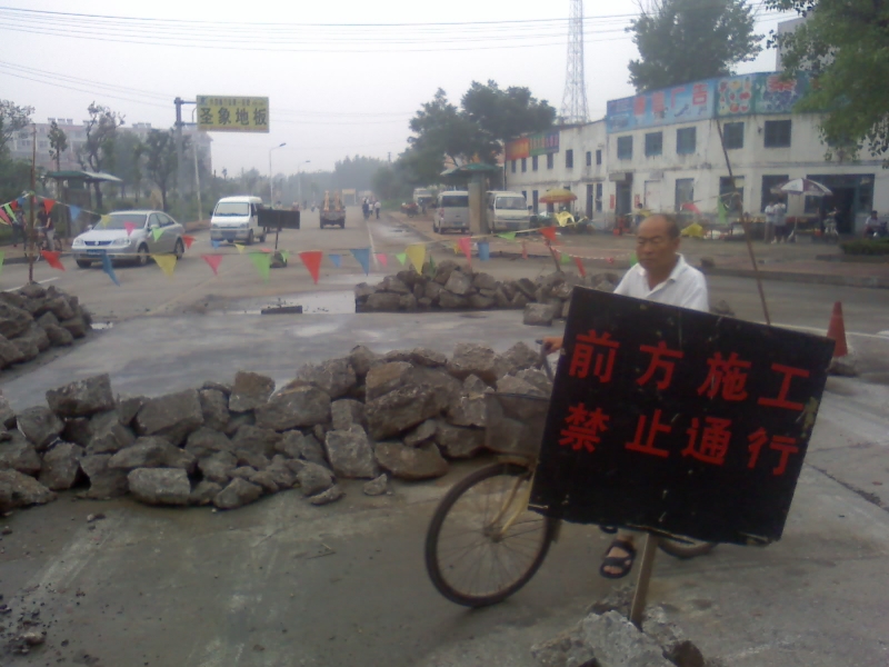 看看人家这路标弄的,车、人、盲人都能知道这里不能走了吧~这就叫专业:光石头就要搬一上午才能围起来,哪像有些地方只放个路牌维修,路被踩的坑坑洼洼滴,或维修工被车撞了。
