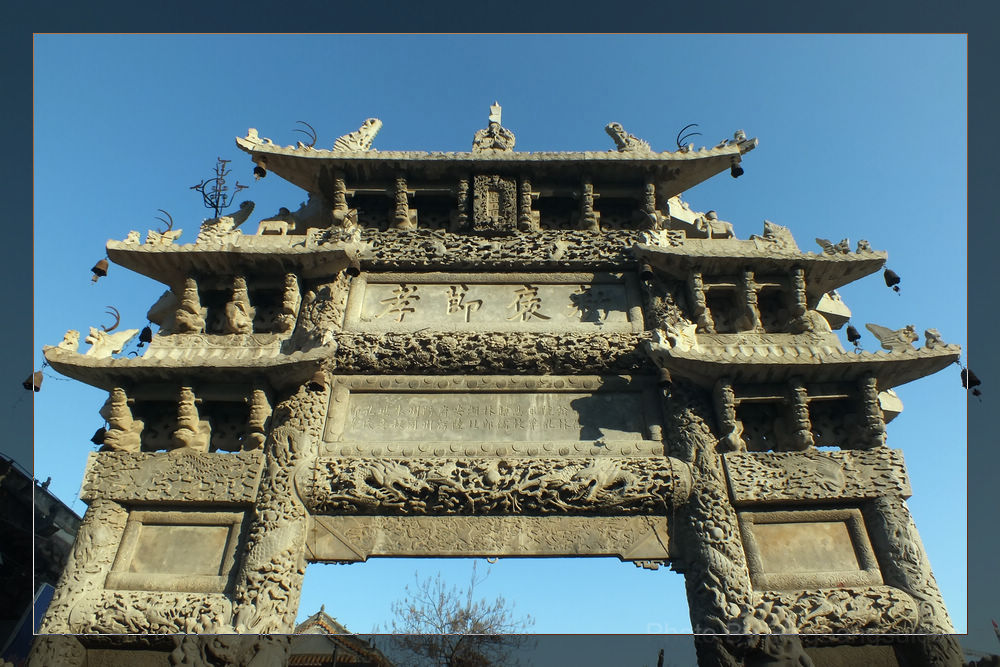 简介:百寿坊俗称朱家牌坊,位于单县城内胜利北街,乃清乾隆三十年(1765年)为翰林院孔目赠儒林郎朱叔琪妻孔氏而建,因雕有一百个不同书体的寿字而得名。坊以青色鱼子状石灰岩构成,通高l3米、宽8米,四柱三间三层楼阁式建筑。其独特之处是:坊座雕有8头矫健雄狮昂首远望,8条出水蚊龙绕柱回舞,额枋上饰满盛开牡丹,与正间上下额枋祥云间翩翩飞舞的5只透雕仙鹤、次间上额枋浮雕的相对翱翔之鸾凤构成了具有无穷魅力之艺术佳作,寓意福寿万年、富贵无媲或喜上眉梢。