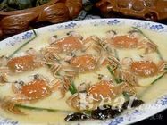 简介:七星紫蟹,是以紫蟹和成菜后的形状定名。紫蟹是天津市郊所产的一种毛腿河蟹,大者如银元,小者如铜钱,每值冬季,聚栖于河堤泥洞之中,须破冰掏捕。此虽小,但腹部洁白无泥,滋味鲜美。因其蟹黄异常丰厚,透过薄薄的蟹盖,呈现出一层紫色,故名。明、清野兽