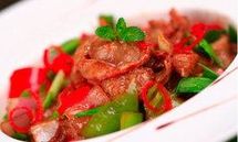 6、炒勺内放入香油(35克),在旺火上烧到7~8成热,下入姜末炸出香味随即放入冬笋、豌豆、煸炒几下,烹入芡汁,翻炒均匀后,再下入炸地的“肥肠”,再颠炒几下,裹匀芡汁后,滴上香油(10克)即成。