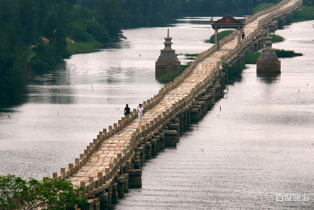 简介:安平桥位于晋江市的安海镇,安海古称安平,因此,此桥得名“安平桥”,又名五里桥、西桥。是用花岗岩和沙石构筑的梁式石桥,横跨晋江安海和南安水头两重镇的海滩,始建于南宋绍兴八年,闻名天下。据《晋江县志》记载:“晋江、南安之界,旧日以舟渡,宋绍兴八年,僧祖派始筑石桥未就,二十一年来赵令衿成之,釃水三百六十二道(即分水道为三百六十二孔),长八百十有一丈,宽一丈六尺……”状如长虹,为中古时代世界上最长的梁式石桥,故有“天下无桥长此桥”的美赞。此外,长桥的两旁置有形式古朴的石塔和石雕佛像,栏杆柱头雕刻着惟妙惟肖的雌雄石狮与护桥将军石像,皆为南宋的石刻。