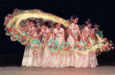 据悉,在刚开始的几年里,“云彩灯舞”的表演者仅有4个人,每人舞两盏灯,灯上绘有铁拐李、张果老、吕洞宾、蓝采和、韩湘子、何仙姑、曹国舅、汉钟离八位神仙。后来,在演出过程中,人们觉得彩灯太少,显得单调,整个表演气氛不够热烈。于是,在原来的基础上又增加了16盏灯,灯上分别彩绘梨山老母、孙膑、白猿、麻姑等人物图像。此后,又增加了一对代表阴阳昼夜的日、月灯。