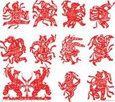 安塞剪纸按应用和内容分四类。第一类,春节用于美化环境。春节是安塞妇女显示技艺的最佳时节,不少家户住室就成了剪纸展览室,剪纸内容多为吉祥如意、六畜兴旺、五谷丰登,保平安、镇邪恶的老虎、狮子是必不可少的内容。第二类,用于嫁娶时装饰洞房,剪纸最有讲究。寓意最深、最有趣的是窗子中间间的“喜花”和窑顶的坐帐花。“蛇盘兔,必定富”。十二属相,蛇又称小龙,龙为阳,男性,兔为阴,女性,是男女婚配之意。曹佃祥的《骑猪娃娃》,娃娃一手举鸟(阳),一手举蝎(阴);猪则寓意多子多福。第三类,用于宗教礼仪活动的装饰。过年都要给神龛上剪个门帘贴上。图案内容上,常用的贯钱、福连万字、云头、鸡、鱼、猪、灶狗等。还有门补、镇宅老虎等。第四类,用于制作刺绣、布玩具的底样,同样是一幅独立的剪纸艺术品,常见的有枕花样、鞋花样、针扎样、裹肚花样等。