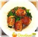 2.将猪油倒入锅内,待烧至六七成热时,将鸡蛋倒入,炸到蛋皮起泡,然后加鲜汤150毫升、料酒、酱油、糖、味精,烧滚后,改用小火烧6分钟,用旺火收浓卤汁,将鸡蛋取出