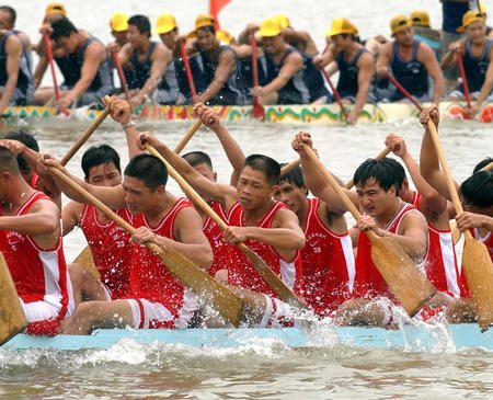 考古发现,原始社会新石器时代吴地有一个名百越的部族,龙就是他们的图腾。他们自比为龙的后代。每年端午不仅舟楫竞渡,取悦蛟龙,还把各种食物装入竹筒,裹以树叶,投入水中,与龙共食。纪念龙神就成了苏州端午节的最初由来,而这也是端午节上最热闹的活动,鼓声激越,人声鼎沸,百姓群聚河边,争看水上健儿划龙舟夺锦标。