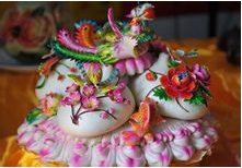 简介:莱州面塑,山东省莱州市传统民间工艺和特产。莱州面塑俗称面花、捏面人,是利用莱州独特的原料资源优质小麦粉,采用传统手工工艺制作的集观赏和实用于一体的传统工艺品,在莱州具有悠久历史。有新婚喜庆、婴儿满月、长寿百岁、上梁大吉、逢年过节等5大类100多个品种。2012年,获批中国地理标志证明商标。