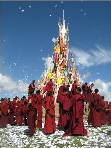 某一部落、地域、村庄的\"保护神\",均设在这一地域最高的山巅或扼守交通要冲的山垭隘口上。人们以五彩的箭垛作为供奉的象征,每年为这些\"保护神\"举行供奉仪式--插换新的彩箭,