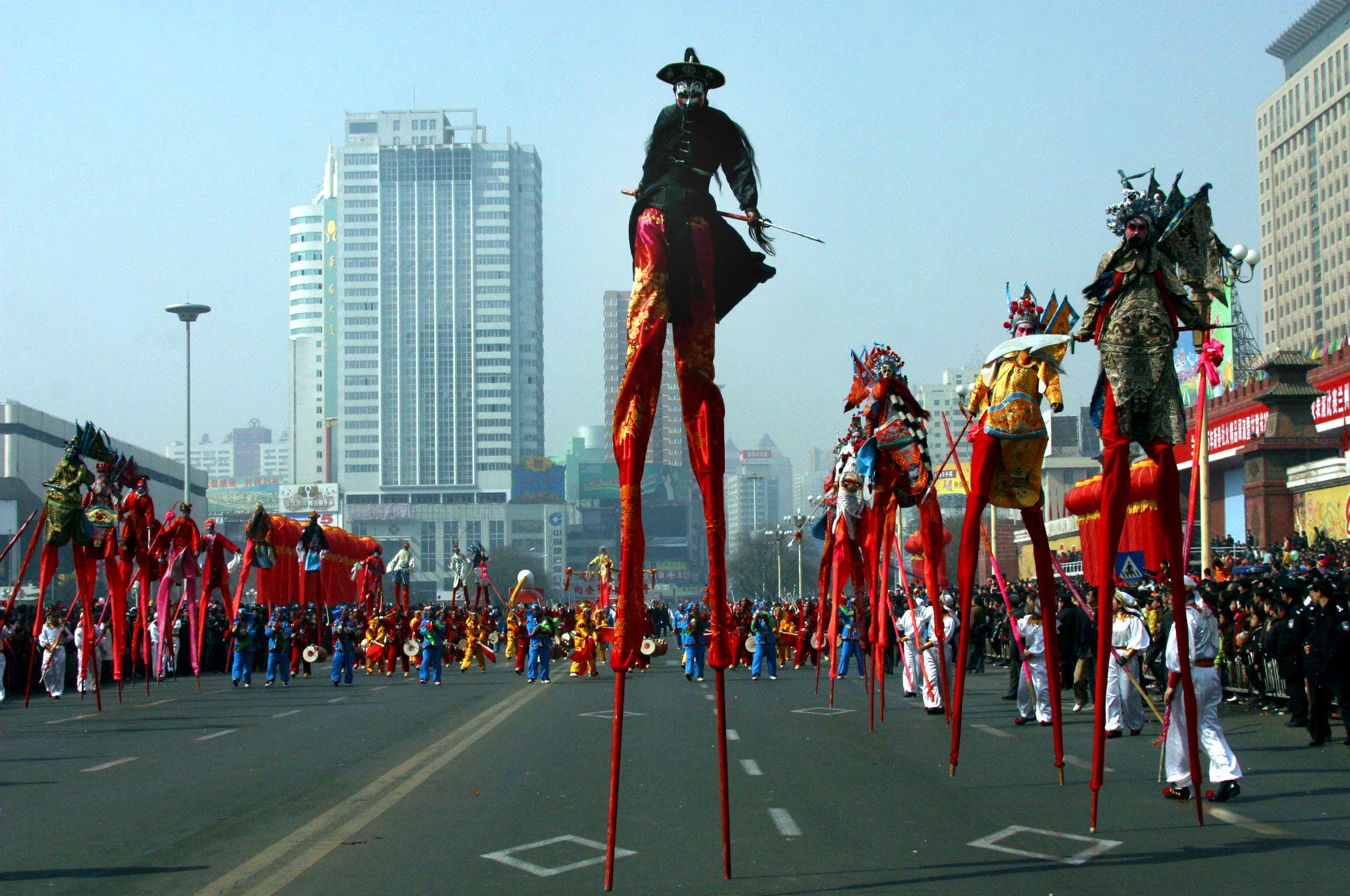 简介:高跷也叫“高跷秧歌”,是一种广泛流传于全国各地的民间舞蹈,因舞蹈时多双脚踩踏木跷而得名。高跷历史久远,源于古代百戏中的一种技术表演,北魏时即有踩高跷的石刻画像;高跷一般以舞队的形式表演,舞队人数十多人至数十人不等;大多舞者扮演某个古代神话或历史故事中的角色形象,服饰多模仿戏曲行头;常用道具有扇子、手绢、木棍、刀枪等;表演形式有“踩街”和“撂场”两种,撂场有舞队集体边舞边走各种队形图案的“大场”和两三人表演的“小场”,角色间多男女对舞,有时边舞边唱。各地高跷所使用的木跷从30厘米至300厘米,高低不一。从表演风格上又分为“文跷”和“武跷”,文跷重扭踩和情节表演;武跷重炫技功夫。