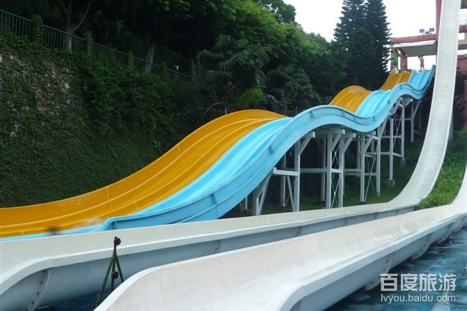 梦幻水城包括梦幻神道、廊堡、儿童反斗城、造浪池、人工漂流河、滑道区、激情溜索、瀑布区和情侣池等。而滑道区中,2012年新增的大型滑道“冲天回旋”现已隆重开放。