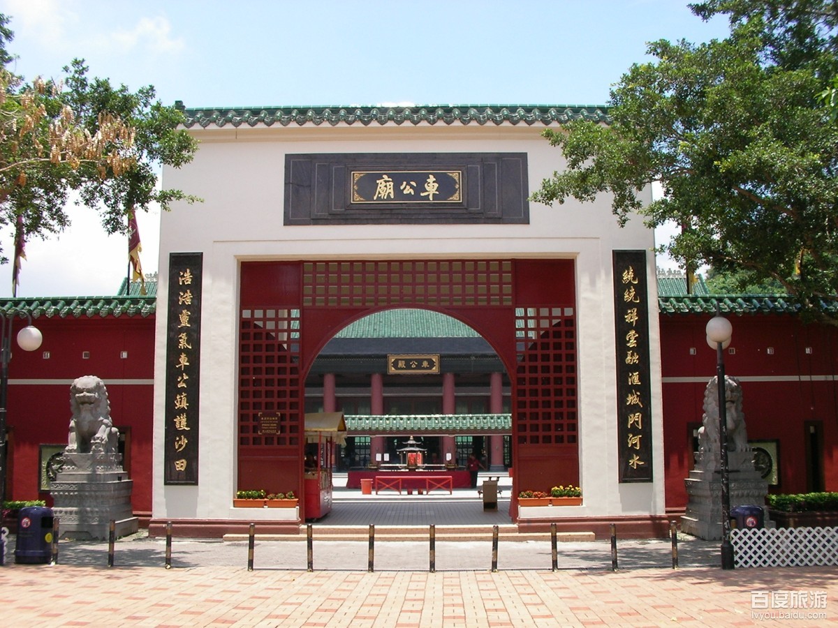 简介:车公庙又称大围车公庙,通常简称为车公庙,是香港新界沙田区大围一座纪念车公的庙宇,为一座香港二级历史建筑。 沙田车公庙入口两旁的石柱上,挂有一副对联:“车转普天下般般丑心变好,公扶九约内事事改祸为祥”。而庙宇左边的走廊上,则有多个相士摊档。沙田车公庙主殿两旁,分别建有一座钟楼和一座鼓楼,车公像屹立于主殿中央的神坛上,两旁摆放著风车,坊间传说转动风车可带来好运。