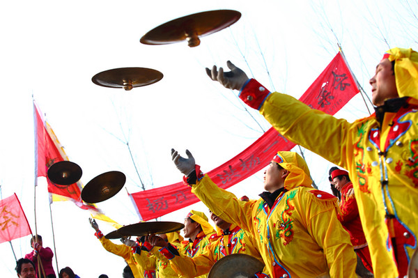 06年4月26日,河南省许昌县艾庄乡鲁湾村的村民在表演河南省非物质文化遗产“铜器舞”。“铜器舞”发祥于河南省许昌县艾庄乡,始于清朝中叶,开始叫“铜器社”,“铜器舞”表演场面宏大,一般不少于50人,其乐器主要为铙、钹、挑子锣、鞭鼓、弓子锣等一些打击乐器。曲牌主要分为三个部分:洛阳挂;虎心镜;黑虎下山。动作也来自生活,如“白鹅大展翅”、“鹞子翻身”等,形象优美,节奏明快,鼓点紧凑,悦耳动听,扣人心弦。2006年10月9日,河南省公布的第一批非物质文化遗产推荐项目中,“铜器舞”榜上有名。