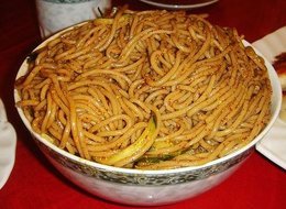 简介: 饸烙:采用红署面和白面,用专用炊具挤压而成。式样美观,味道独特,口感亲切,老少皆宜。