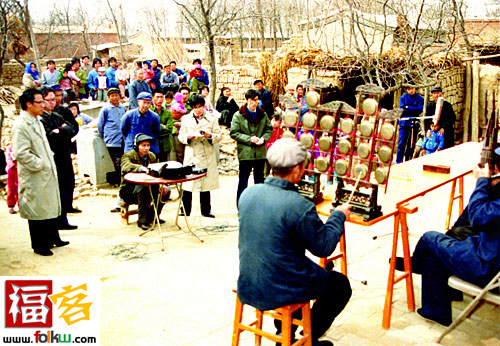 霸州胜芳镇南音乐会于清末开始兼收高腔、昆曲,成为镇内“两下锅”的最大音乐社团。新中国成立后昆曲逐渐淡出,但至今乐手们仍能吹奏昆腔。在当地众多音乐会中,幡旗、角灯、鼓架、茶挑等构成的宏大阵形成为镇南音乐会的特色。胜芳镇南音乐会的演出仪式、阵形及具有独特风格的相关器物都是佛教音乐在民间的真实遗存,也是认识研究古典佛教音乐及当地民俗民风的重要资料。