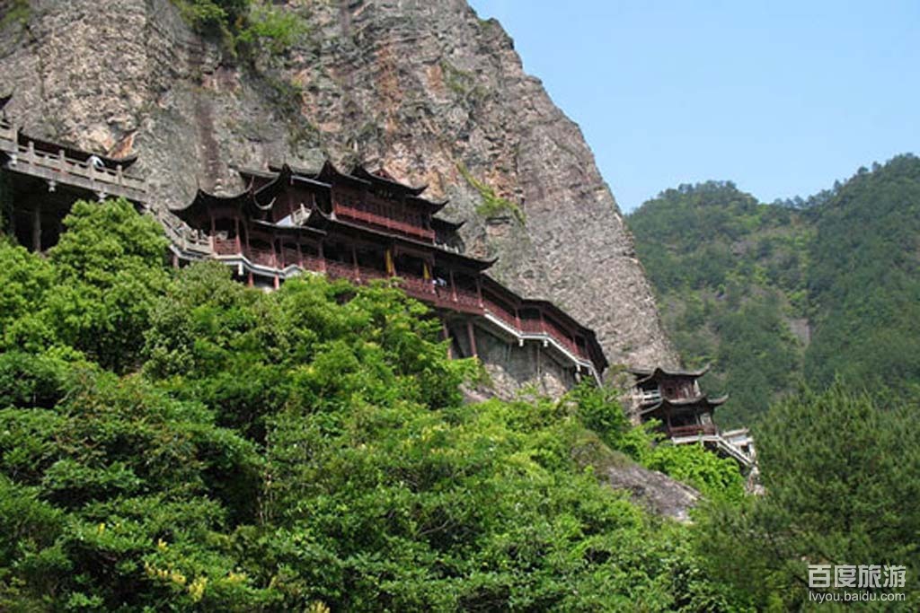 简介:大慈岩,位于建德市南面24公里处。是一个佛教文化和秀丽山水完美结合的旅游胜地,素有“浙西小九华”之誉,以“江南悬空寺、长谷溪流、全国第一天然立佛”而闻名遐迩。悬崖高位洞穴建筑是大慈岩的一大特色。主殿寺庙地藏王大殿依山而建,它一半嵌入岩腹,一半凌架悬空,颇为奇险壮观,它与山西恒山悬空寺有异曲同工之妙。新建的另一寺庙清风阁凌空构架于悬崖峭壁之上,远视有凌云欲飞之势,而登寺俯瞰,远近山川尽收眼底,更是悬空之极。今人所凿之“天栈云渡”,沿断崖因势布局,凭栏俯视,有“足底悬崖恐欲崩”之感。从侧面看整个大慈岩主峰就是一尊地藏王菩萨的立像。由奇石、怪洞、草木和谐地组合成大佛的五官,惟妙惟肖,形象十分逼真。被命名为“全国最大天然立佛”,被誉为“中华一绝”。而大慈岩也因“山是一尊佛,佛是一座山”的稀有自然景观而名扬四海,载入《中国之最》。