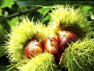 简介: 产地:中国河北。 历史:京东板栗历史悠久。西汉司马迁在《史记》的“货殖列传”中就有“燕,秦千树栗,…… 此其人皆与千户侯等”的明确记载。《苏秦传》中有“秦说燕文侯曰:“南有碣石雁 门之饶,北有枣栗之利,民虽不细作,而足于枣栗矣,此所谓天府也”……之说。 西晋陆机为《诗经》作疏也说:“栗,五方皆有,惟渔阳范阳生者甜美味长,他方 不及也。”由此可见,京东燕山山区和长城脚下的劳动人民早在2000年前后就已栽 培板栗。 概况:板栗又名“栗子”,属山毛榉科,落叶乔木。初夏开花,秋分栗熟,果肉金黄,味道甜香,是一种木本粮食,素有“干果之王”的美誉,是一种一年种百年收的“铁 杆庄稼”。京东板栗品质好,适应性强,抗旱耐涝,产量高,为中国栗子植物中的优良品种。这种板栗,鲜食脆甜爽口,煮食柔绵耐味,糖炒更是香味扑鼻,甘甜盈口; 可以用栗子烹调多种名菜,栗子煲鸡就是我国著名的菜肴;还可以加工制做栗干、 栗粉、栗酱、栗浆、糕点、罐头等食品,栗子羹则是老幼皆宜,营养丰富的糖果。 特点:京东板栗个大皮薄,色泽鲜艳,外观整洁,果肉细腻,风味芳酣独特。 成份:据分析,它含有蛋白质、脂肪、糖、淀粉、粗纤维、胡萝卜素、维生素C、B1、B2 等多种成分,可供人体吸收和利用的养分高达98%。功效:中医学认为,栗性甘温,无毒,有健脾补肝,强身壮骨的医疗作用。经常生食可治 腰腿无力,果壳和树皮有收敛作用;鲜叶外用可治皮肤炎症;花能治疗瘰疡和腹泻; 根治疝气。民间验方多用栗子,每日早晚各生食一至二枚,可治老年肾亏,小便弱频;生栗捣烂如泥,敷于患处,可治跌打损伤,筋骨肿痛,而且有止痛止血,吸收 脓毒的作用。   ( 河间)