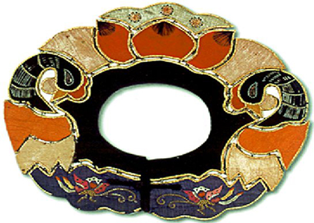 简介:新布贴,是农村妇女用缝衣时裁剪下来的边角,多在黑色或深蓝色的布料上,精心拼贴成的各种五彩斑斓的图案。它用于装饰衣服、鞋帽、披肩等穿戴物和帐沿、飘带、布枕及童玩等。《人民日报》、《光明日报》、《中国文化报》、《装饰》等多家报刊竟相载文刊图,称阴新布贴具有“使人触目难忘,撼人心魄的艺术感染力。”1989-1990年间,阳新布贴被送往捷克斯洛伐克、塞浦路斯、苏联、保加利亚等国家展出,许多外国人争相拍摄和临习。