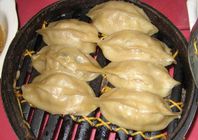莜麦饺饺是宁武人民十分喜欢的一种传统食品。此饺子包馅不同,风味也各异,但莜面固有的醇香不变。其做法是用刚烧开的滚水将莜面和成盆光、面光、手光的三光面团,用两手搓成直径7-8cm薄如饺皮的圆形面片,然后将面片对折起来,把事先准备好的菜(多数为山药丝拌蔬菜,有的可以山药丝拌韭菜茉,也可以山药拌茴子白菜,还可以葫萝卜拌肉丝)包入其内,用手指捏好口封,放在蒸笼,上锅蒸15-20分钟,即可食用。