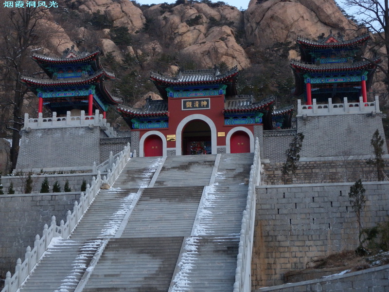 每当阴霾天气,山头白云缭绕,滴翠浮青,云海如浪,烟雾缭绕,并时有霞光出现,或明或暗,宛若烟霞缥缈,景色奇绝。烟霞洞,神清观是全真教的祖庭,在中国历史上具有重要的地位,是我国道教宗奉的圣地。如今,金庸武打电视剧《射雕英雄传》中的“全真七子”石雕像、铜碑、圣旨碑、丹井、“七真”墓保护完好。