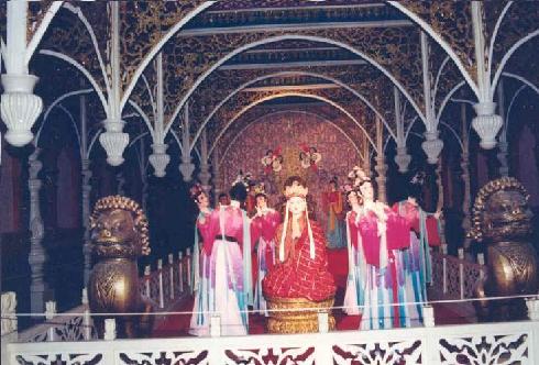 简介:西游记宫位于烟台市养马岛省级旅游度假区中部,性质为股份制企业。一九九一年开业,占地 面积2万平方米,建筑面积6000余平方米,总投资600多万元,是根据中国古典名著《西游记》的故事为题材,由中央电视台《西游记》剧组总设计师马洪运教授等在拍摄连续剧《西游记》基础上设计制作的大型人造景观。西游记宫是一处由度假区旅游局主管,董事会领导,总经理负责的股份制企业,共有职工86人,其中导游员20人。现在年接待游客2万余名,年收入达到30万元,游客构成主要为国内旅游者,小部分为境外旅游者。
