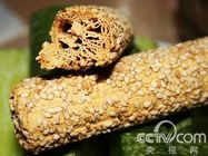 6、瓜条沥干后,倒入备好的糖液中,浸渍8~12小时,将研细的白糖放入糖液中,使糖液浓度增高到波美40度,再浸8~12小时后加热煮沸20分钟,糖液浓缩,渗入瓜条,待糖液浓度达78~80%时即可出锅返砂。出锅后的瓜条,待糖液全部粘在瓜条上,表面稍干,即散开冷却,瓜条被一层糖衣裹住,即成糖瓜条。