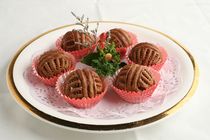 特产文化:核桃酥的制作即先把面粉过筛,放在案板上围成圈,把食物、食臭粉、白砂糖、糖浆、鲜蛋放在圈内擦匀使之溶解,再放入油料、核桃仁和匀,然后把面粉投入拌匀,分成200个小剂,用手搓成圆形,放进饼盘,在每个饼坯中央用手指压一小孔,扫上蛋浆,粘上榄仁,再扫一次蛋浆,入炉用140~150℃烘烤至金黄色,饼面有裂纹为佳。