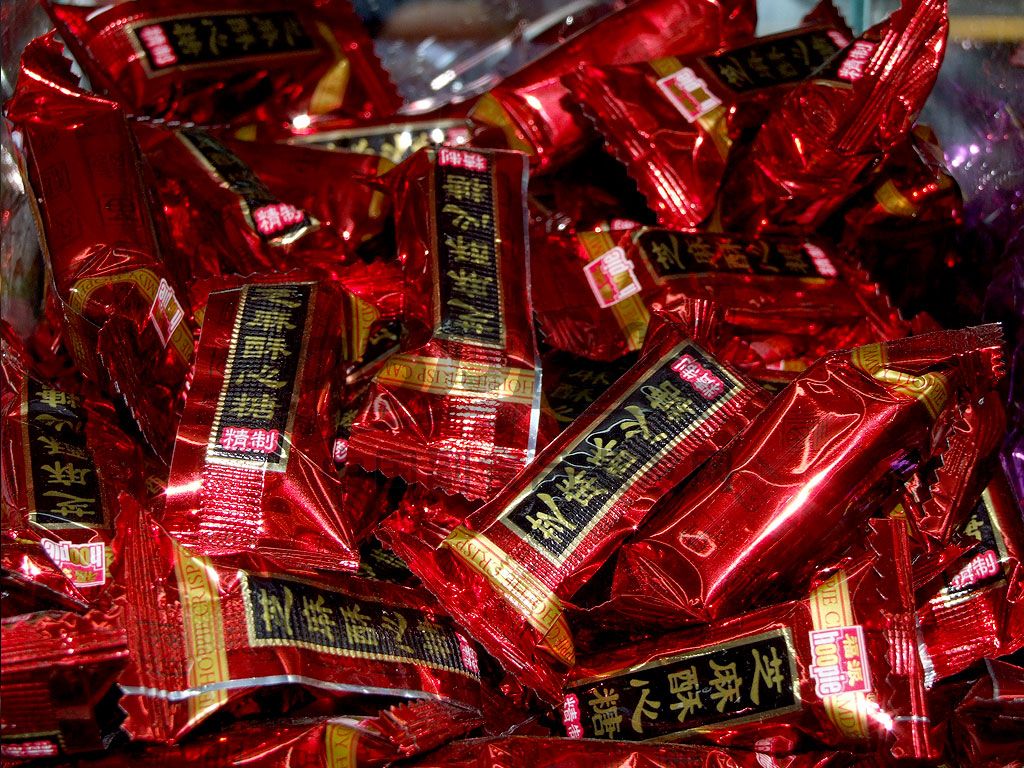 2.白芝麻酥糖:米饴、香油、小麦面粉、白芝麻、白砂糖、绵白糖、糖玫瑰。