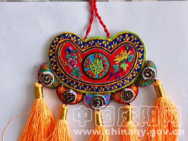 庆阳香包是一种立体造型和平面刺绣兼容的纯手工艺制品,构型简单质朴,按制作技艺分有“绌绌”类、线盘类、立体刺绣类、平面刺绣类四大类型。“绌绌”又名藏针绣,其特点是把针线藏起来,以造型状物、形神兼备而不见针线为佳境,其工艺流程包括创意、选料、剪裁、状物等环节。线盘类香包是用各色线条盘成五角菱形的“粽子”,其技艺包括折壳子、配色线、盘线成型、成果(即将线盘成品连缀,吊上彩穗)等,如此制成的香包可以随身佩戴,可以挂在门庭,也可以馈赠他人,以寓示祥和平安。立体刺绣类香包内容庞杂,形式繁多,有单面挂、佩件,双面挂、佩件,立体挂件和摆件等近四百种样式,其制作过程分构图、刺绣、彩染、缝合、成果等环节,有过样子、打样子、扩背子、上样子、绣花、状物、成果、打扮等工艺步骤,制品讲究神似而不求形似。平面刺绣类香包风格敦厚凝重,厚实中流露出隽永,其制作有破线绣、合线绣、掇绣及齐针、辫针、缉针、掺针、抢针、挽针、盘金、点金、圈金等方法。